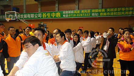 2014年4月24日由恩施州總工會組織的慶“五一”州直職工撥河賽在州體育館舉行,共有來自州直機(jī)關(guān)及企事業(yè)單位共59支代表隊(duì)參賽。