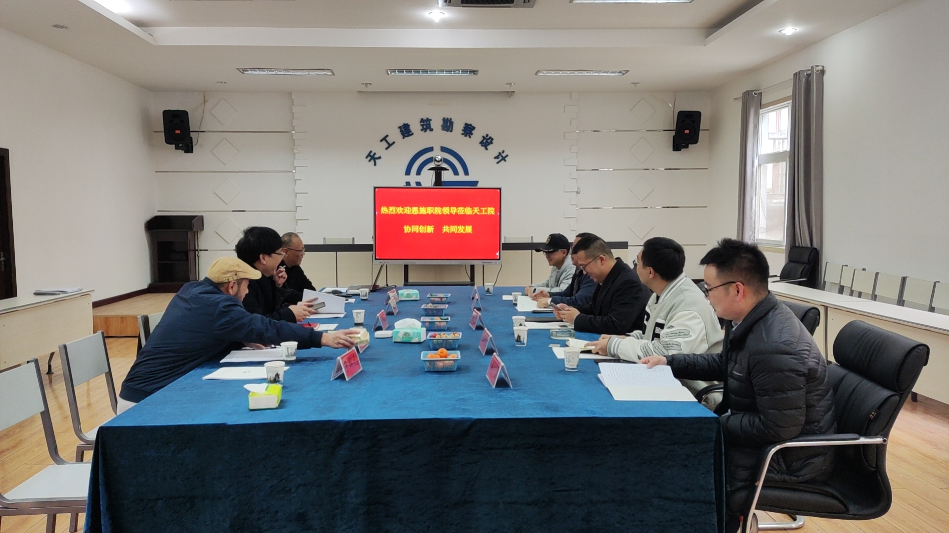 2023年12月8日,恩施職業技術學院建筑工程學院院長雷元凱、江向東、謝東赤、趙勇、張文一行人走進了華德萊工程咨詢有限公司下屬的湖北天工建筑勘察設計有限公司(天工設計院)恩施總部進行專項協同探討,華德萊工程咨詢有限公司董事長金會容先生主持并攜各相關負責人參會。